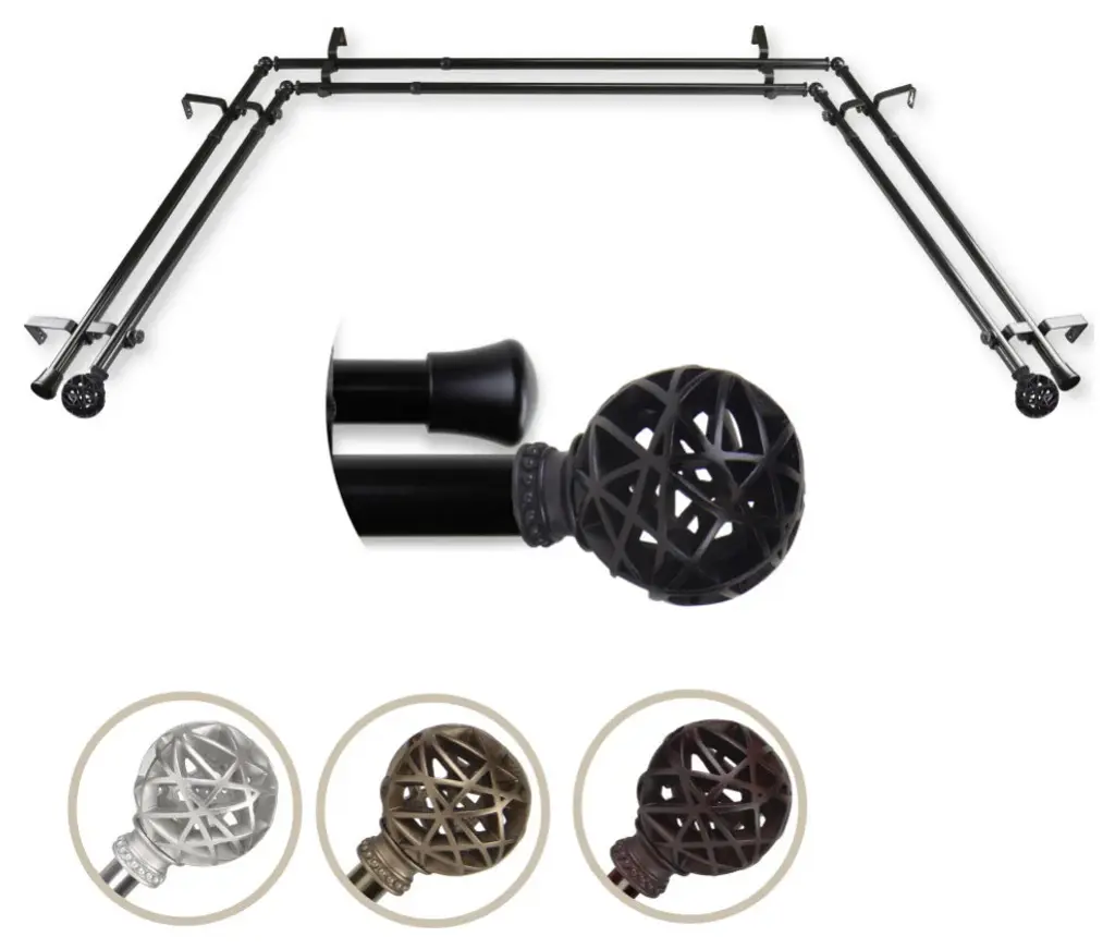 Arabella 13/16" Bay Window Double Curtain Rod, Black