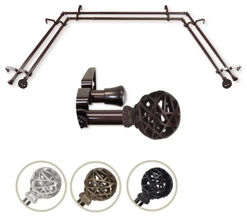 Arabella 13/16" Bay Window Double Curtain Rod, Cocoa
