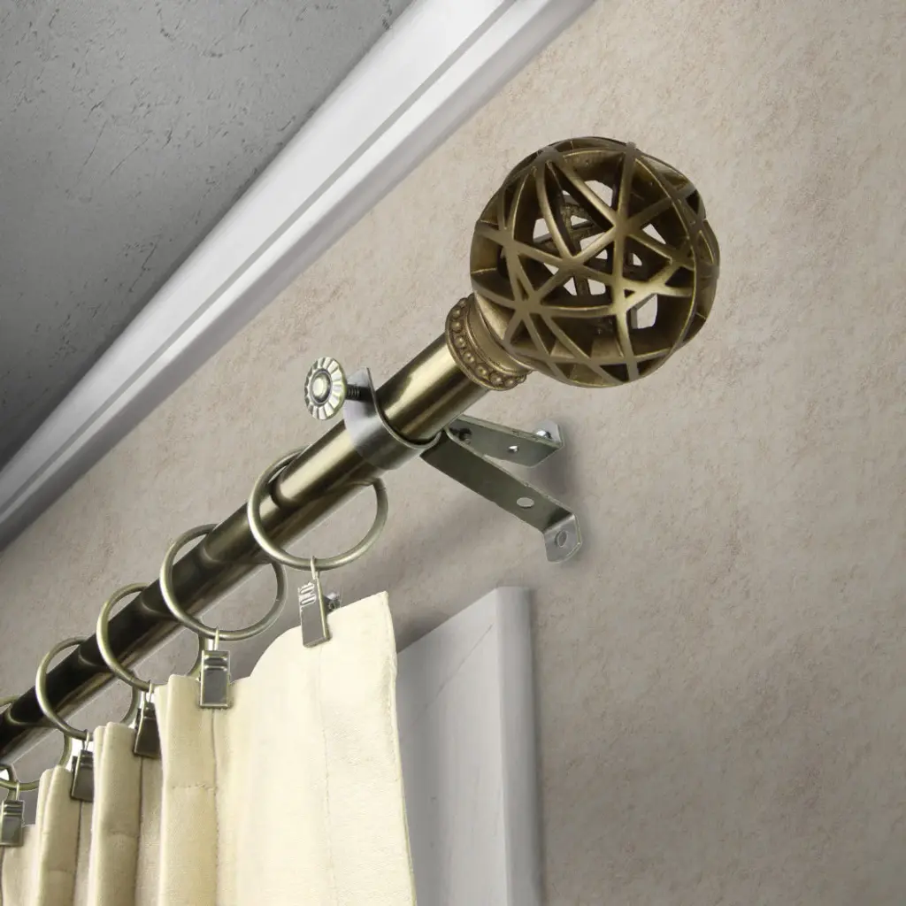 Add a sophisticated touch to your window treatment with a 13/16" diameter curtain rod set. Made of high quality steel rods and resin finials. Includes one 48-84 inches telescoping steel pole 3 brackets and 2 finialsProjection: 2.875"Finial measurement: 3.75" W x 3" H x 3" DRod Diameter: 13/16 inch