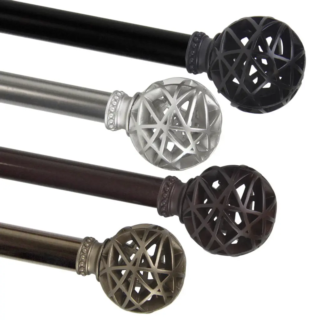 Add a sophisticated touch to your window treatment with a 13/16" diameter curtain rod set. Made of high quality steel rods and resin finials. Includes one 66-120 inches telescoping steel pole 3 brackets and 2 finialsProjection: 2.875"Finial measurement: 3.75" W x 3" H x 3" DRod Diameter: 13/16 inch