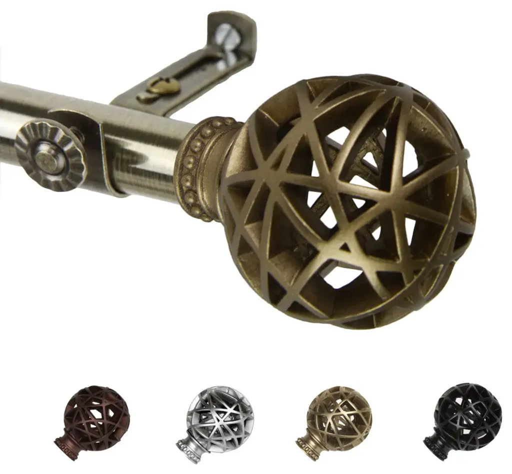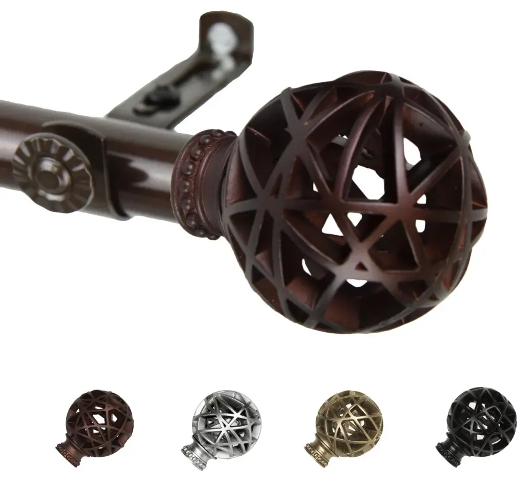 Add a sophisticated touch to your window treatment with a 13/16" diameter curtain rod set. Made of high quality steel rods and resin finials. Includes one 66-120 inches telescoping steel pole 3 brackets and 2 finialsProjection: 2.875"Finial measurement: 3.75" W x 3" H x 3" DRod Diameter: 13/16 inch