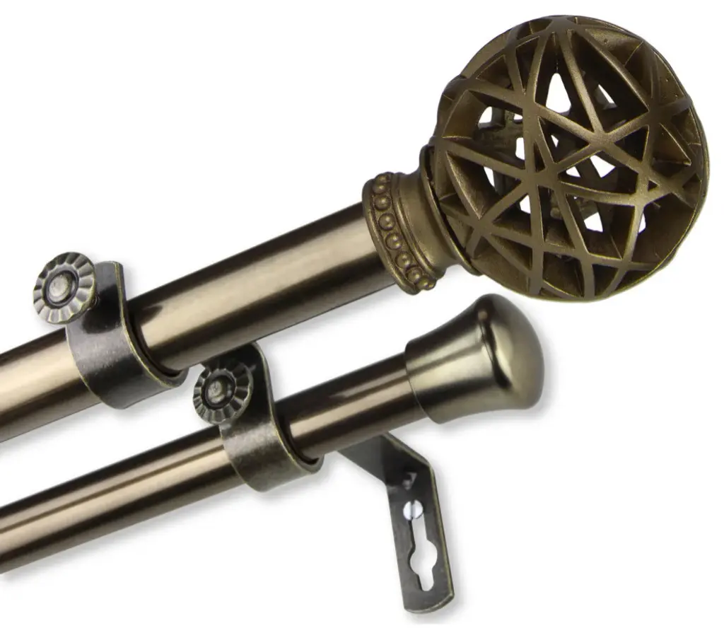 Arabella 13/16"d Double Curtain Rod, Antique Brass, 120-170"