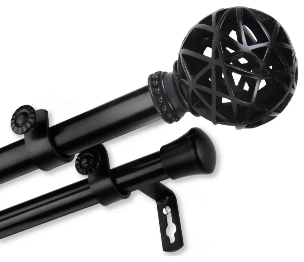 Arabella 13/16"d Double Curtain Rod, Black, 28-48"