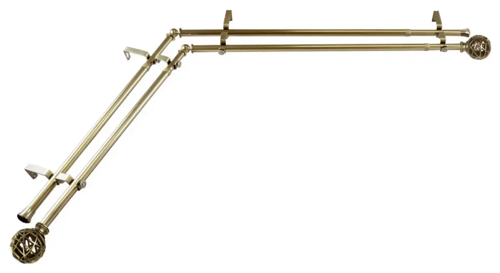 Arabella Corner Window Double Curtain Rod 13/16"d, Antique Brass, 48-84"