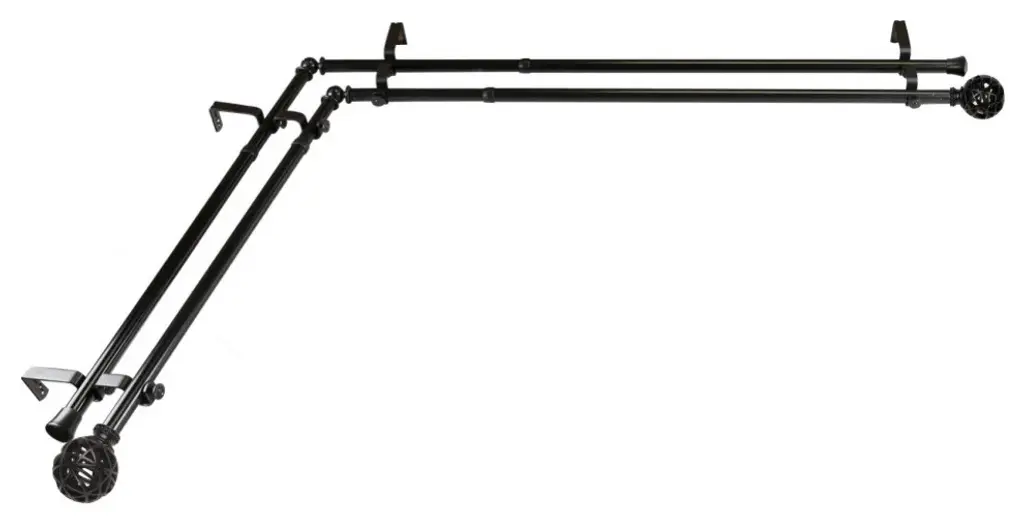 Arabella Corner Window Double Curtain Rod 13/16"d, Black, 48-84"