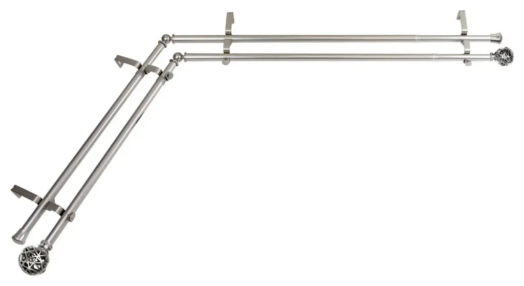 Arabella Corner Window Double Curtain Rod 13/16"d, Satin Nickel, 120-170"
