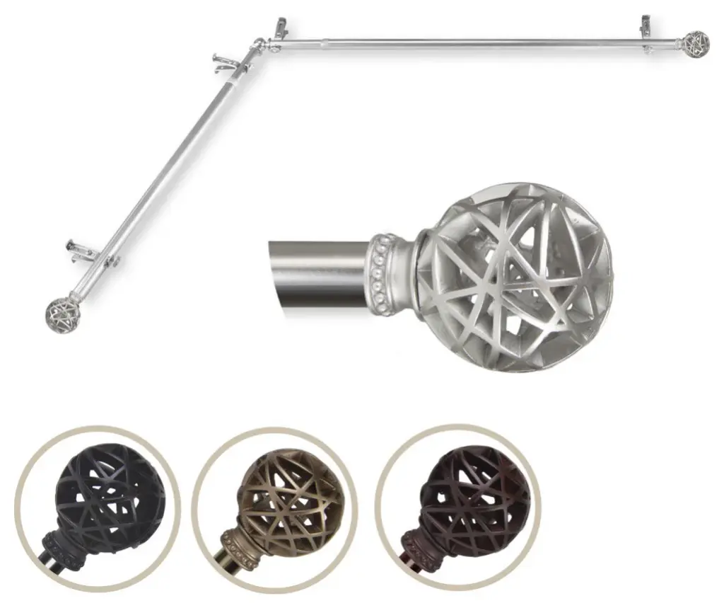 Add a sophisticated touch to your window treatment with a 13/16" diameter corner window curtain rod set. Made of high quality steel rods and resin finials.Includes two 66-120 inches telescoping steel pole 6 brackets and 2 finials.Projection: 2.875"Finial measurement: 3.75" W x 3" H x 3" DRod Diameter: 13/16 inch