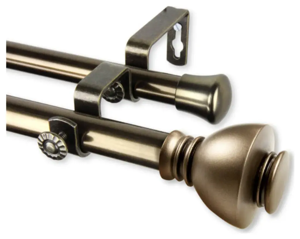 Aria 13/16"d Double Curtain Rod, Antique Brass, 66-120"