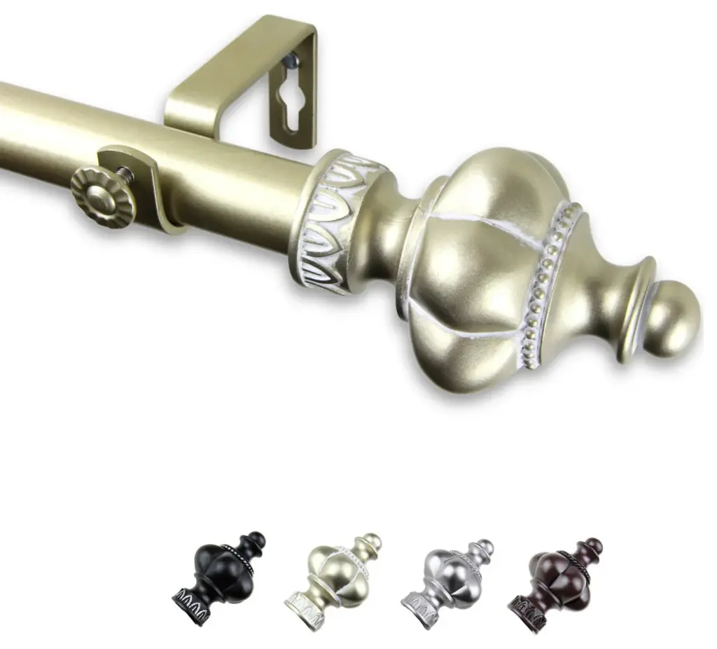 Central Design Products is thrilled to present our top-of-the-line Single Curtain Rods, the ultimate addition to any window treatment. Our high-quality rods are crafted with precision to provide a sleek and modern look to your home decor. Each set includes a single curtain rod, finials, sturdy mounting brackets, and all necessary mounting hardware. The elegant color of our curtain rods adds a touch of sophistication to your space. Upgrade your window treatment with Central Design Products'' Single Curtain Rods today! Includes 1 curtain rod of 1" diameter, finials, mounting brackets, and mounting hardware. Size: 160-240" Projection: 3.625" Rod Diameter: 1" Material: Steel