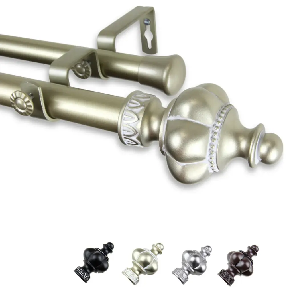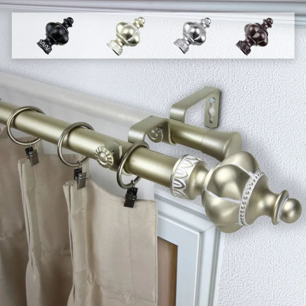 Central Design Products is thrilled to present our top-of-the-line Double Curtain Rods, the ultimate addition to any window treatment. Our high-quality rods are crafted with precision to provide a sleek and modern look to your home decor. Each set includes a double curtain rod, finials, sturdy mounting brackets, and all necessary mounting hardware. The elegant color of our curtain rods adds a touch of sophistication to your space. Upgrade your window treatment with Central Design Products'' Double Curtain Rods today! Includes 1 curtain rod of 1" diameter, one curtain rod of 13/16" diameter, finials, endcaps, mounting brackets, and mounting hardware. Size: 66-120" Projection: 6.75" Front Rod Diameter: 1" / Back Rod Diameter: 13/16" Material: Steel