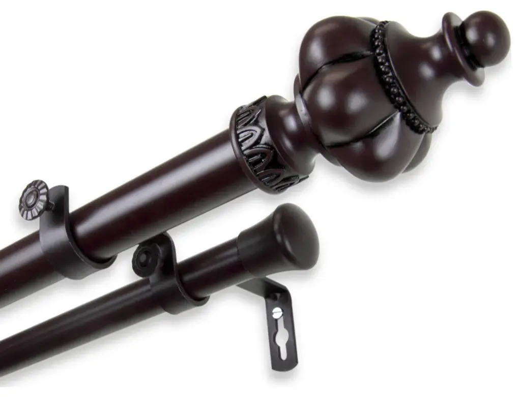 Arlie 1" Double Curtain Rod, Mahogany, 66-120"