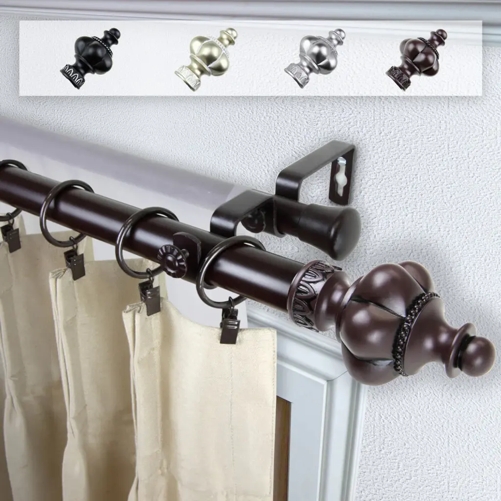 Central Design Products is thrilled to present our top-of-the-line Double Curtain Rods, the ultimate addition to any window treatment. Our high-quality rods are crafted with precision to provide a sleek and modern look to your home decor. Each set includes a double curtain rod, finials, sturdy mounting brackets, and all necessary mounting hardware. The elegant color of our curtain rods adds a touch of sophistication to your space. Upgrade your window treatment with Central Design Products'' Double Curtain Rods today! Includes 1 curtain rod of 1" diameter, one curtain rod of 13/16" diameter, finials, endcaps, mounting brackets, and mounting hardware. Size: 66-120" Projection: 6.75" Front Rod Diameter: 1" / Back Rod Diameter: 13/16" Material: Steel
