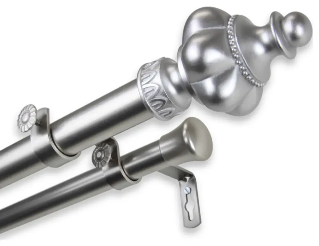 Central Design Products is thrilled to present our top-of-the-line Double Curtain Rods, the ultimate addition to any window treatment. Our high-quality rods are crafted with precision to provide a sleek and modern look to your home decor. Each set includes a double curtain rod, finials, sturdy mounting brackets, and all necessary mounting hardware. The elegant color of our curtain rods adds a touch of sophistication to your space. Upgrade your window treatment with Central Design Products'' Double Curtain Rods today! Includes 1 curtain rod of 1" diameter, one curtain rod of 13/16" diameter, finials, endcaps, mounting brackets, and mounting hardware. Size: 66-120" Projection: 6.75" Front Rod Diameter: 1" / Back Rod Diameter: 13/16" Material: Steel