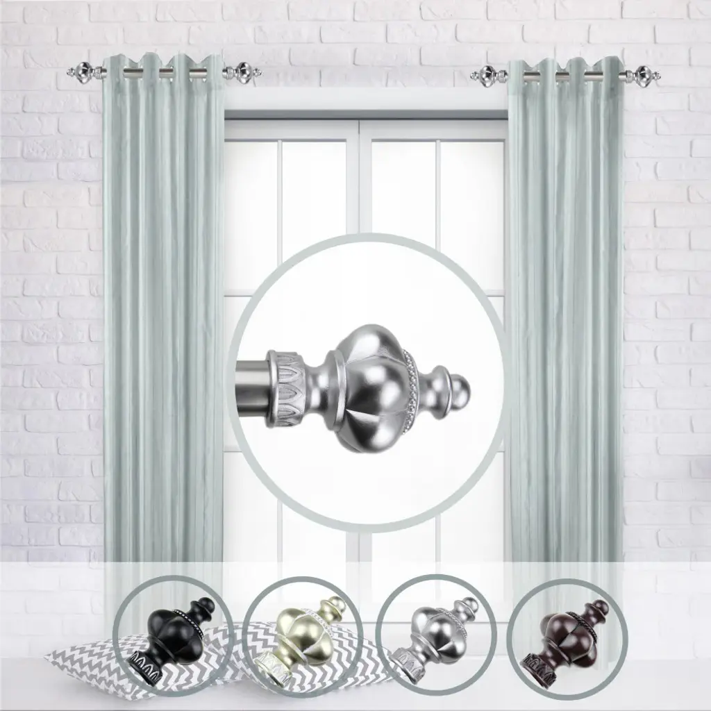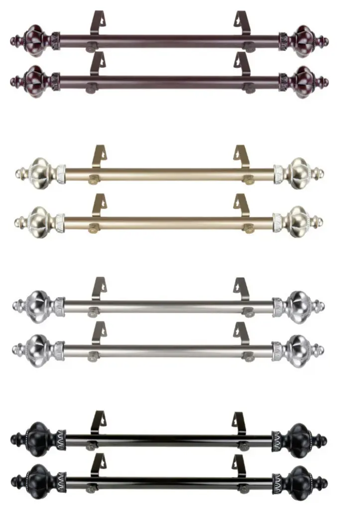 Central Design Products is thrilled to present our side curtain rods, which will add alluring style and refined touch to your window treatment and home decor. Add a nice touch to each side of your beautiful window to apply a modern and unique look in your living space. Includes two 1" diameter telescoping rods, four finials, four side mount brackets and mounting hardware. Size: 12-20" Projection: 3.625" Steel Rod