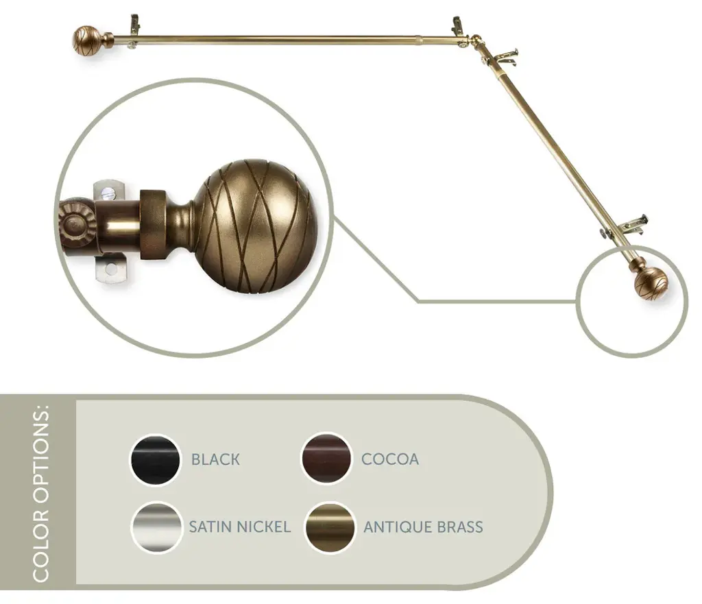 Easily and effortlessly decorate your corner windows with our new telescoping corner rods. Two 13/16" curtain rods attach via corner ball connector that allows for nearly 360 degrees of rotation. These high quality steel rods are accented with decorative finial end pieces.