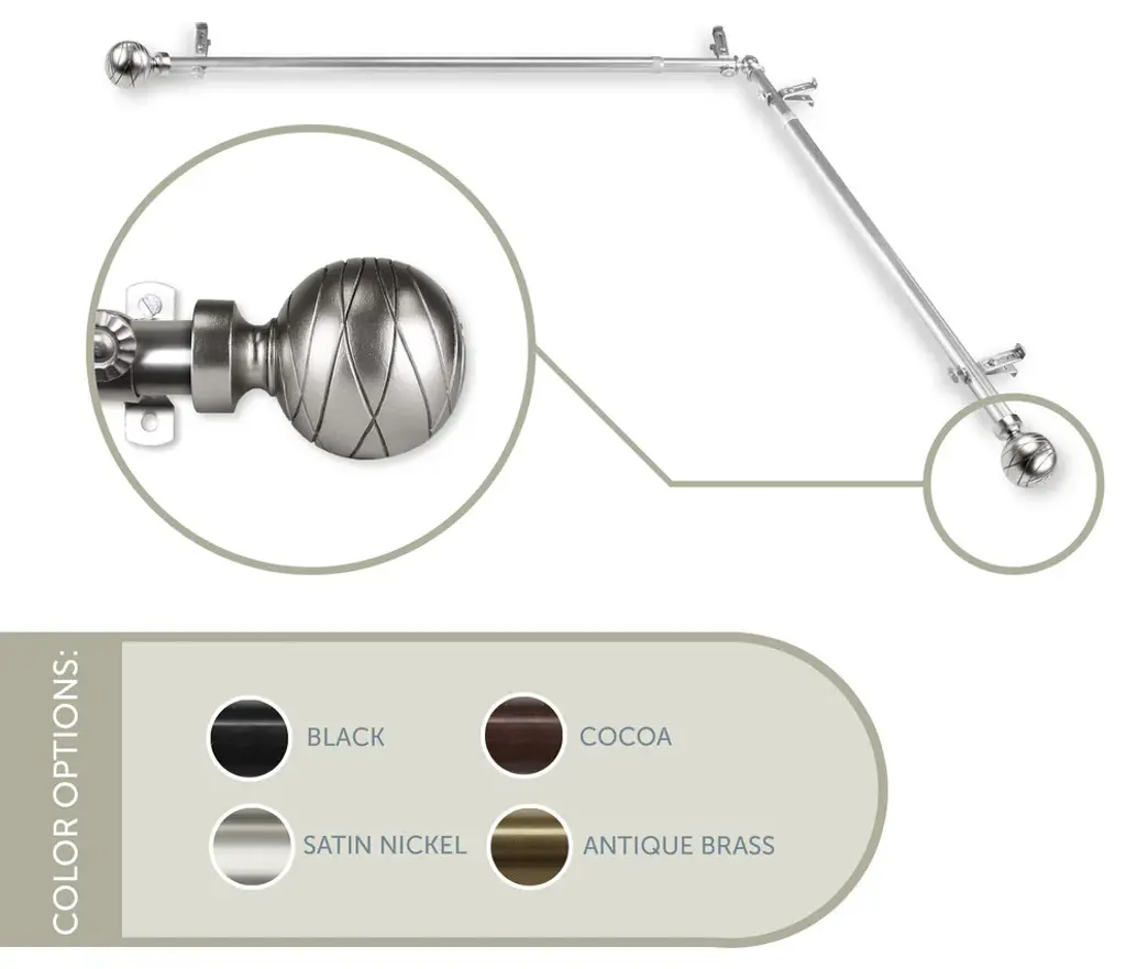 Easily and effortlessly decorate your corner windows with our new telescoping corner rods. Two 13/16" curtain rods attach via corner ball connector that allows for nearly 360 degrees of rotation. These high quality steel rods are accented with decorative finial end pieces.