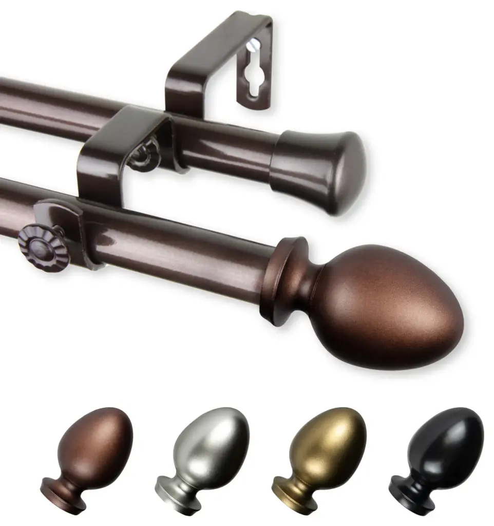 Arman Double Curtain Rod, Cocoa, 120-170"