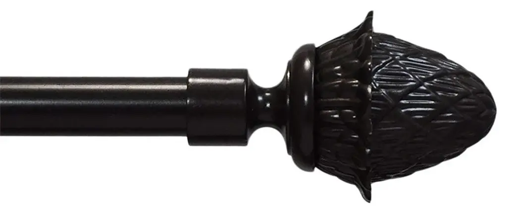 Bring a designer''s touch to your window treatments with the Artichoke Finial Rod Set.Steel adjustable rod, Outer rod measures 5/8" diameter, inner rod measures 1/2" diameter.Finial size: 2" diameter, 3 1/4" lengthMounting hardware included:standard matching brackets that extend from 4" to 5.5" deep.Two brackets come with 28"-48" set,three brackets come with both 48"-84" and 88"-120".Assembly required(screwdriver).