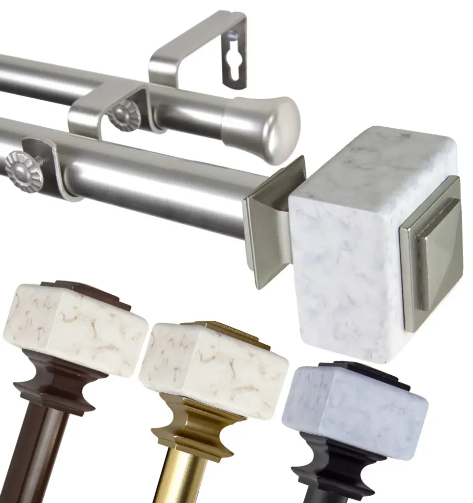 Aubree 1" Diameter Double Curtain Rod, Black, 48-84"