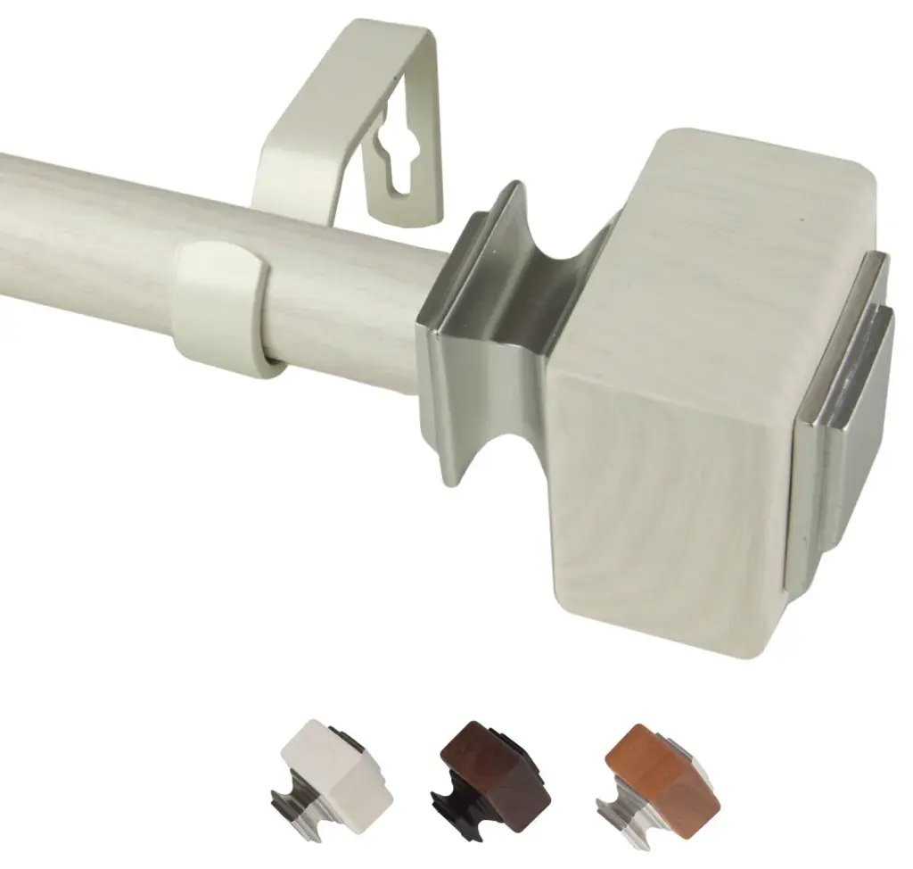 Presenting the newly designed faux wood curtain rod set. Give your window treatment a natural look with this 1 inch diameter rod, beautifully complimenting any window. Includes telescoping steel pole, mounting hardware, brackets, and 2 finials Projection: 3.625" Finial measurement: 3.5" W x 2.5" H x 2.5" D