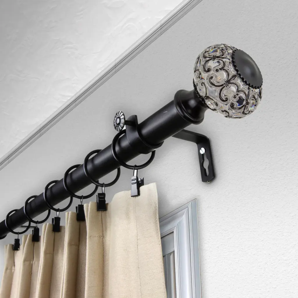 Decorate your window with Central Design Products Curtain Rod. This rod is made of solid steel pole with high quality finials that will add sophisticated touch to your windowIncludes one 66-120 inches telescoping steel pole 3 brackets and 2 finialsFinial Measurement: 3-1/4" W x 2-3/4" H x 3" DProjection: 3.625 inchesRod Diameter: 1 inch