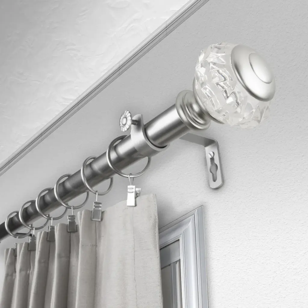 Decorate your window with Central Design Products Curtain Rod. This rod is made of solid steel pole with high quality finials that will add sophisticated touch to your windowIncludes one 66-120 inches telescoping steel pole 3 brackets and 2 finialsFinial Measurement: 3-1/4" W x 2-3/4" H x 3" DProjection: 3.625 inchesRod Diameter: 1 inch