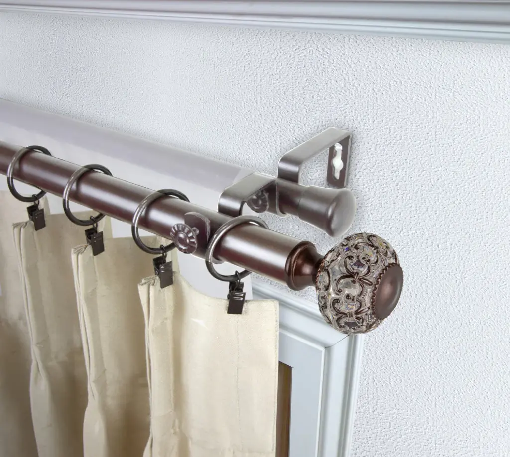 Decorate your window with Central Design Products Curtain Rod. This rod is made of solid steel pole with high quality finials that will add sophisticated touch to your windowIncludes two 160-240 inches telescoping steel pole 5 brackets and 2 finialsFinial Measurement: 3-1/4" W x 2-3/4" H x 3" DProjection: from rod to wall 6.75 inches back rod to wall 3.75 inchesRod Diameter: 1 inch