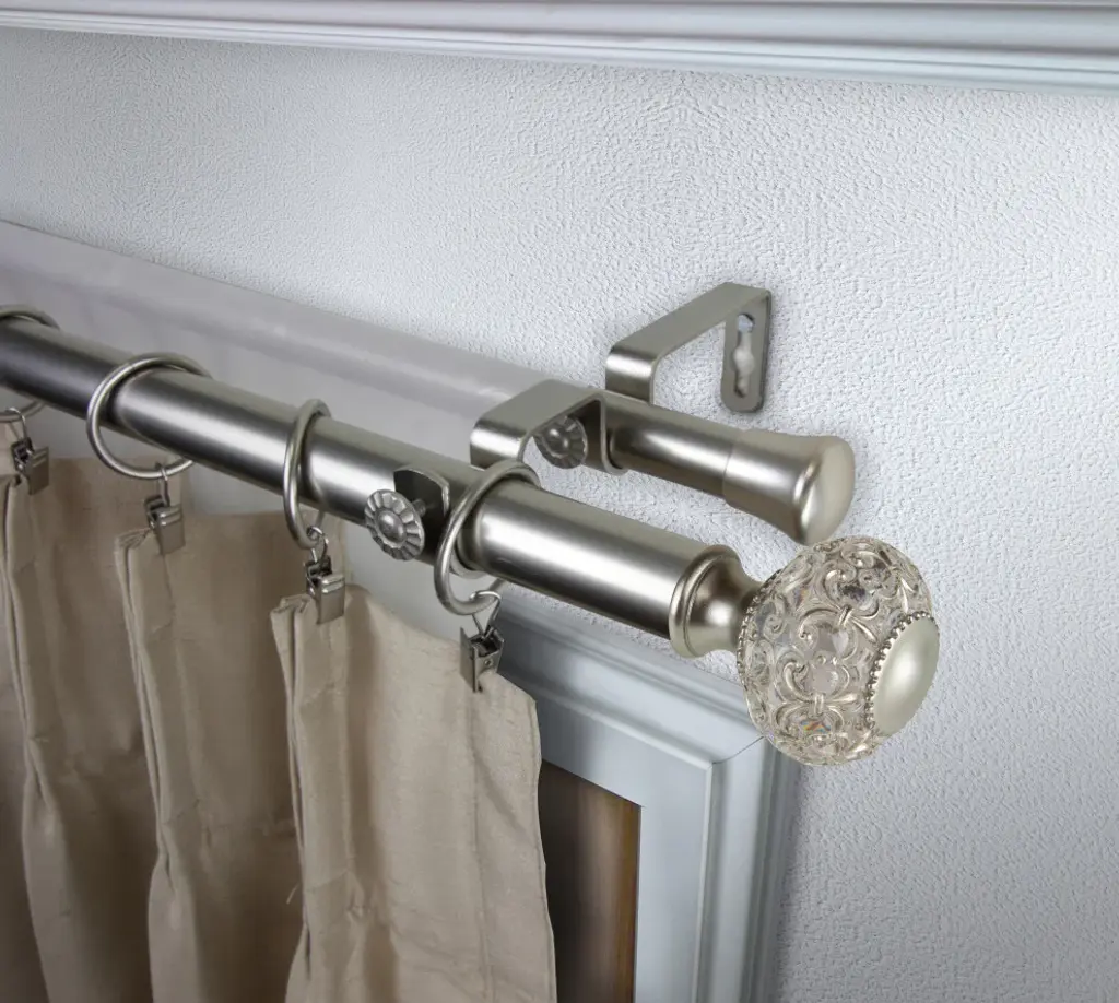 Decorate your window with Central Design Products Curtain Rod. This rod is made of solid steel pole with high quality finials that will add sophisticated touch to your windowIncludes two 48-84 inches telescoping steel pole 3 brackets and 2 finialsFinial Measurement: 3-1/4" W x 2-3/4" H x 3" DProjection: from rod to wall 6.75 inches back rod to wall 3.75 inchesRod Diameter: 1 inch