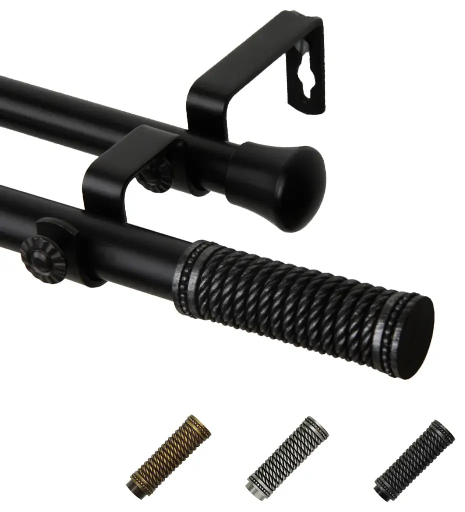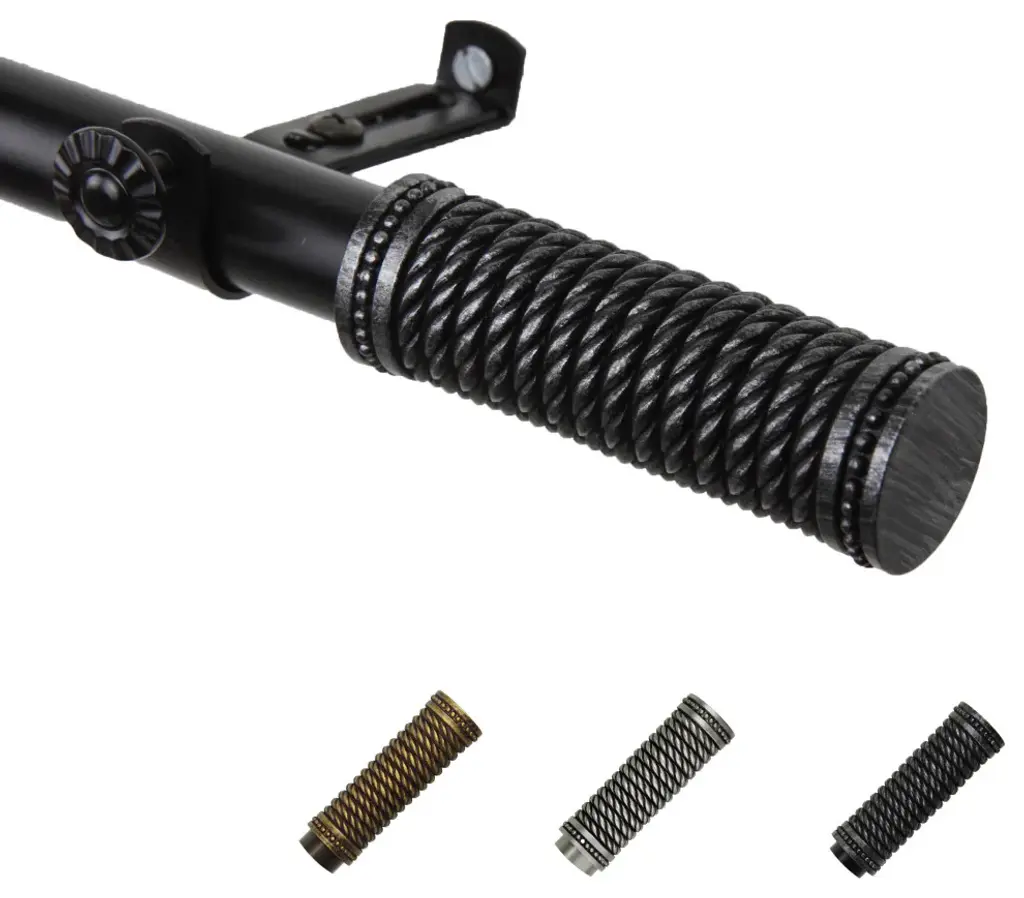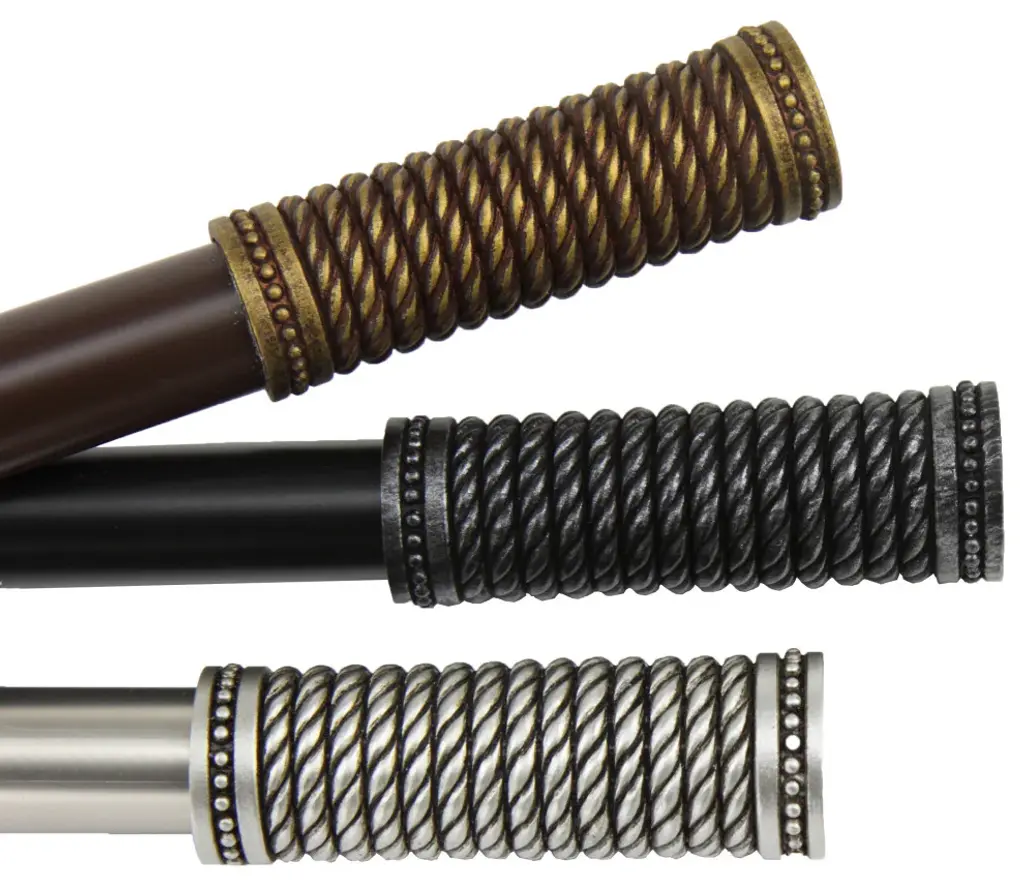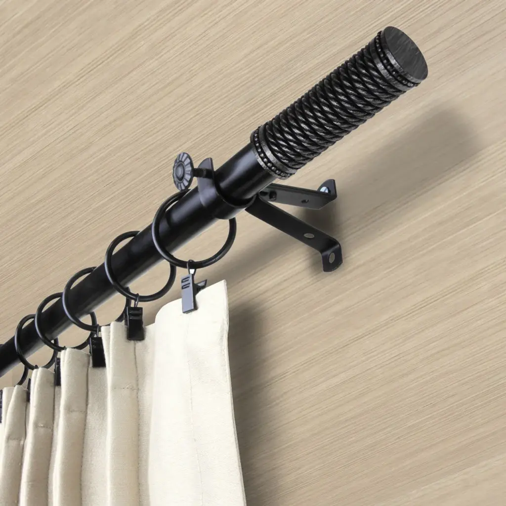 Introduce an elegant touch to your window treatment with this beautiful 13/16" diameter curtain rod set, made of high quality steel rods. Includes telescoping steel pole, mounting hardware, brackets, and 2 finials Projection: 2.875" Finial measurement: 3.25" W x 1" H x 1" D
