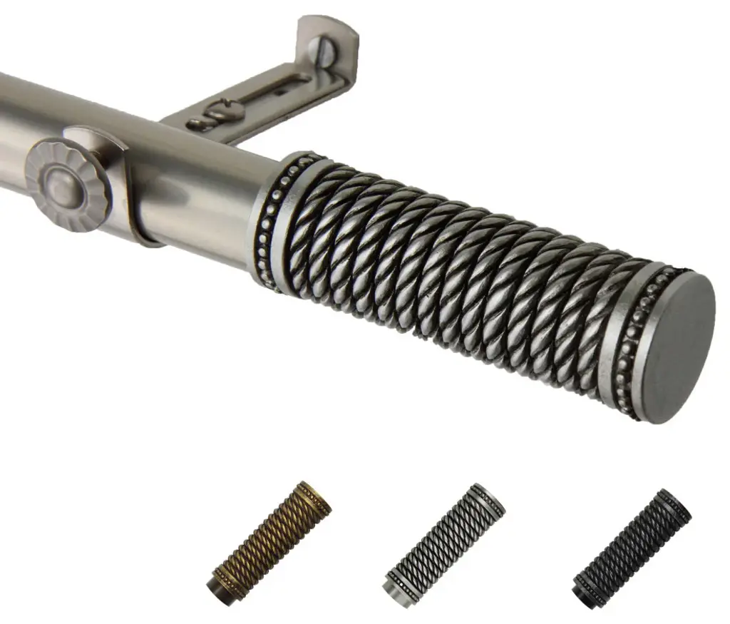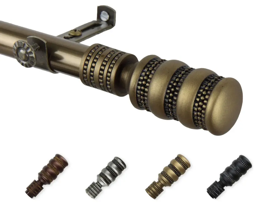 Introduce an elegant touch to your window treatment with this beautiful 13/16" diameter curtain rod set, made of high quality steel rods. Includes telescoping steel pole, mounting hardware, brackets, and 2 finials Projection: 2.875" Finial measurement: 3.25" W x 1" H x 1" D