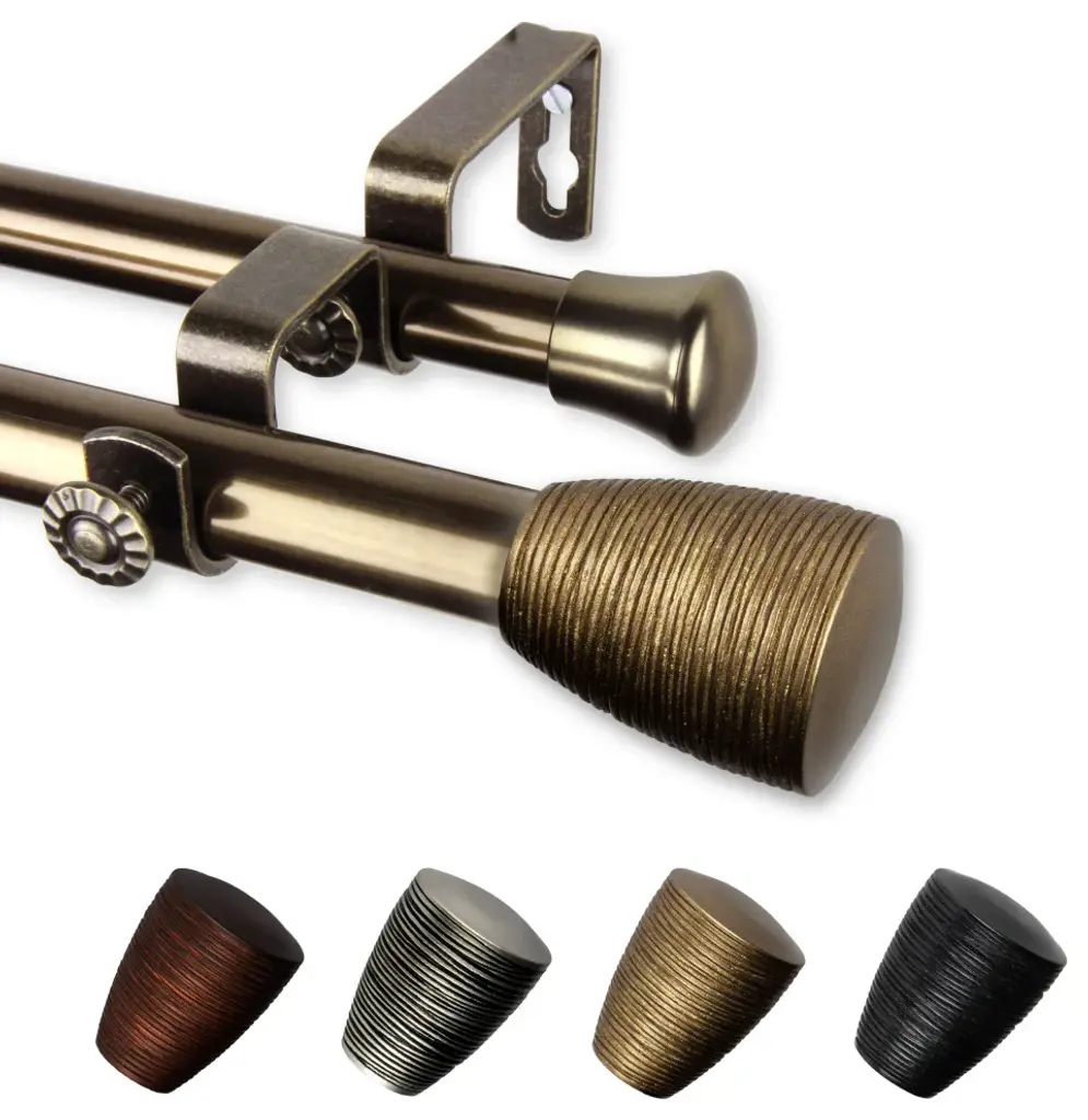 Introduce an elegant touch to your window treatment with this beautiful 13/16" diameter double curtain rod set, made of high quality steel rods. Includes 2 telescoping steel pole, mounting hardware, brackets, and 2 finials Projection: 2.875" Finial measurement: 3.25" W x 1" H x 1" D