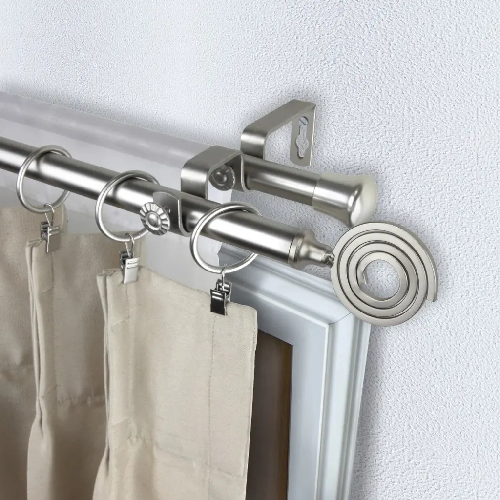 Introduce an elegant touch to your window treatment with this beautiful 13/16" diameter double curtain rod set, made of high quality steel rods. Includes 2 telescoping steel pole, mounting hardware, brackets, and 2 finials Projection: 2.875" Finial measurement: 3.5" W x 2.5" H x .188" D