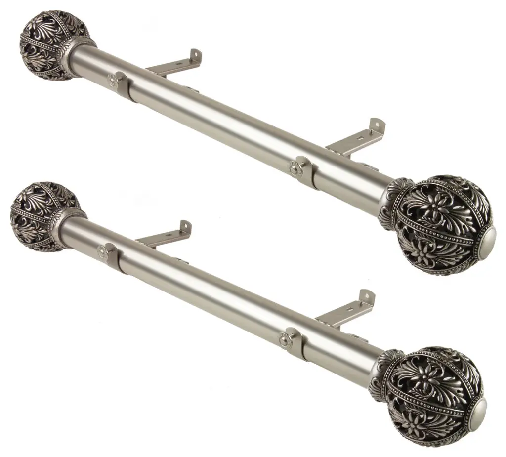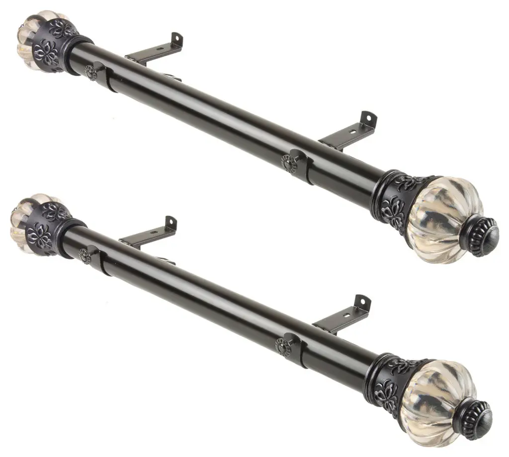 This side mount curtain rod will add alluring style and refined touch to your window treatment and homeIncludes two 1.5" diameter non-telescoping 18 inch rod, four finials, four side mount brackets and mounting hardware Finial measurement: 4-1/4" W x 3-1/4" H x 3-1/4" DBracket Projection: 4.5 inchInstallation instructions includedSteel Rod and Resin Finial