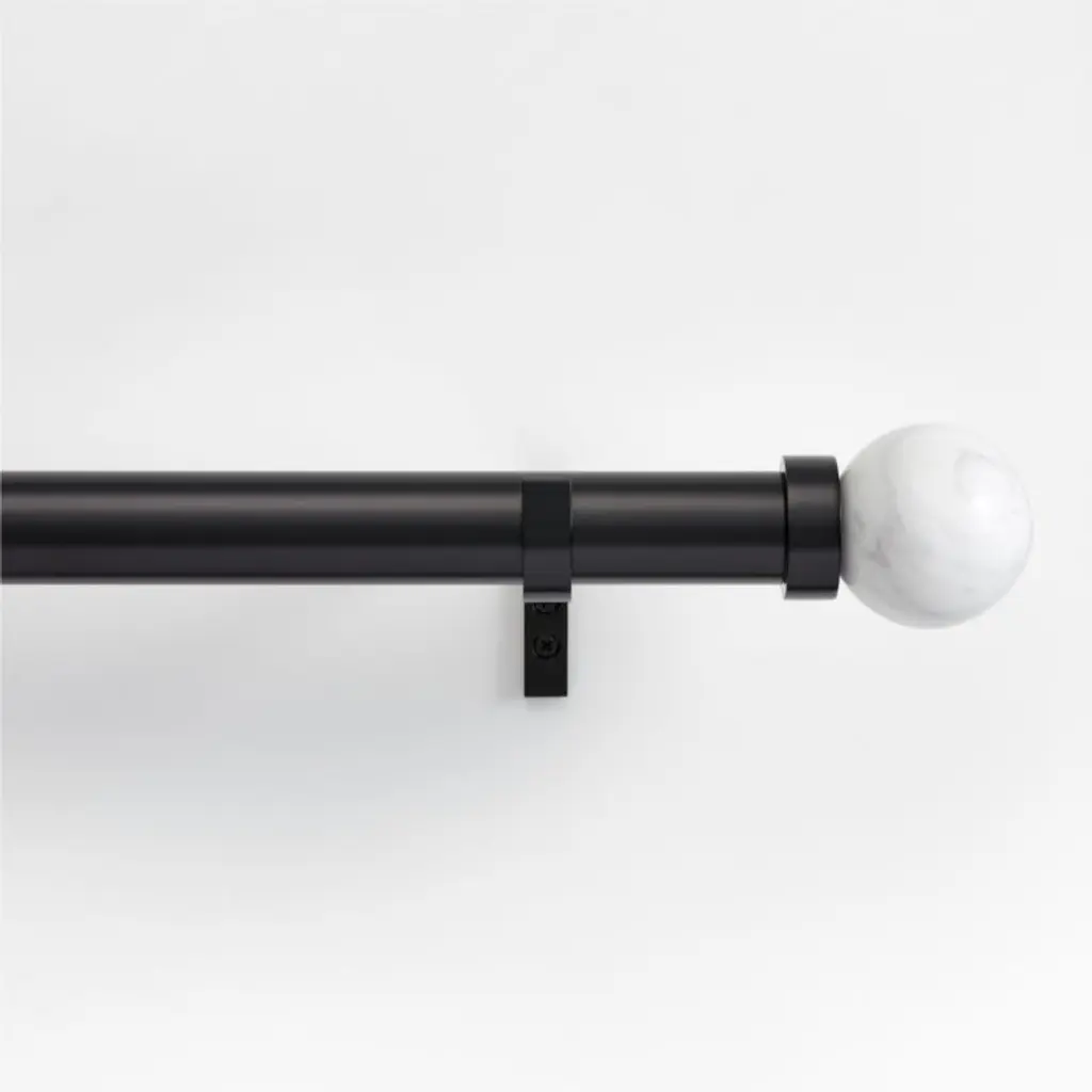 Show your curtains off to their best effect with this modern-classic rod set. Simple yet statement-making, spheres of white marble round out your drapery with a luxe finishing touch, adding organic beauty to the sleek curtain rod and understated brackets. This curtain rod set includes a telescoping rod, brackets and mounting hardware, all in black. Complete your window dressing with our black curtain rings and tiebacks (sold separately).