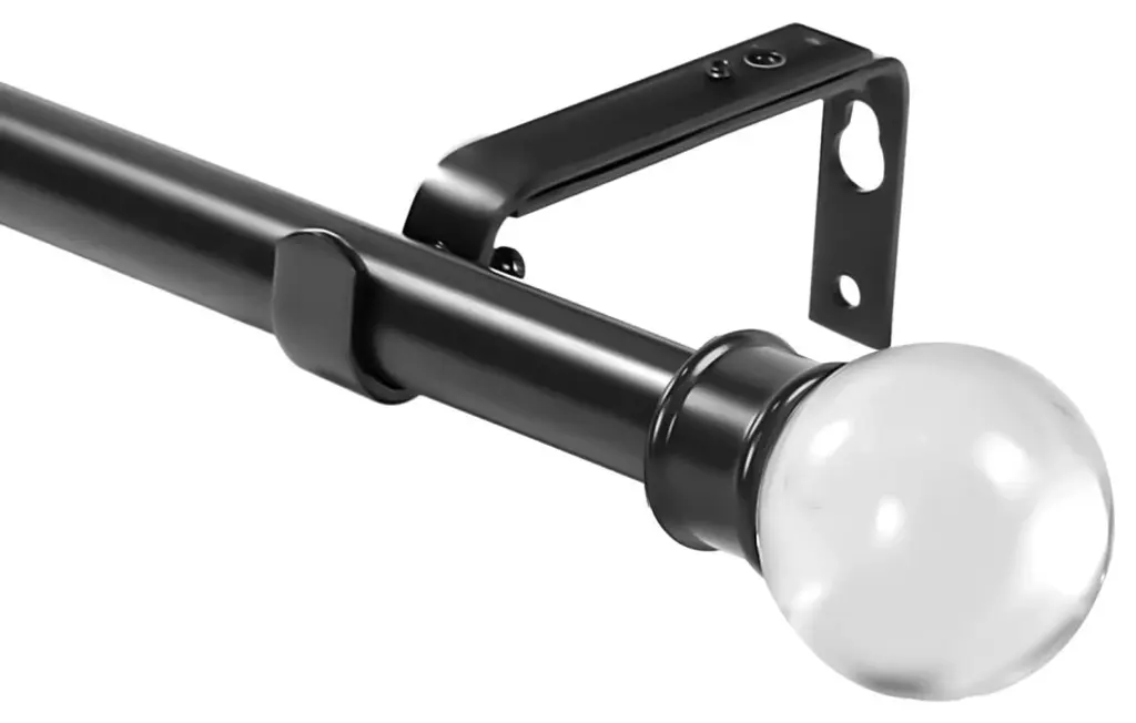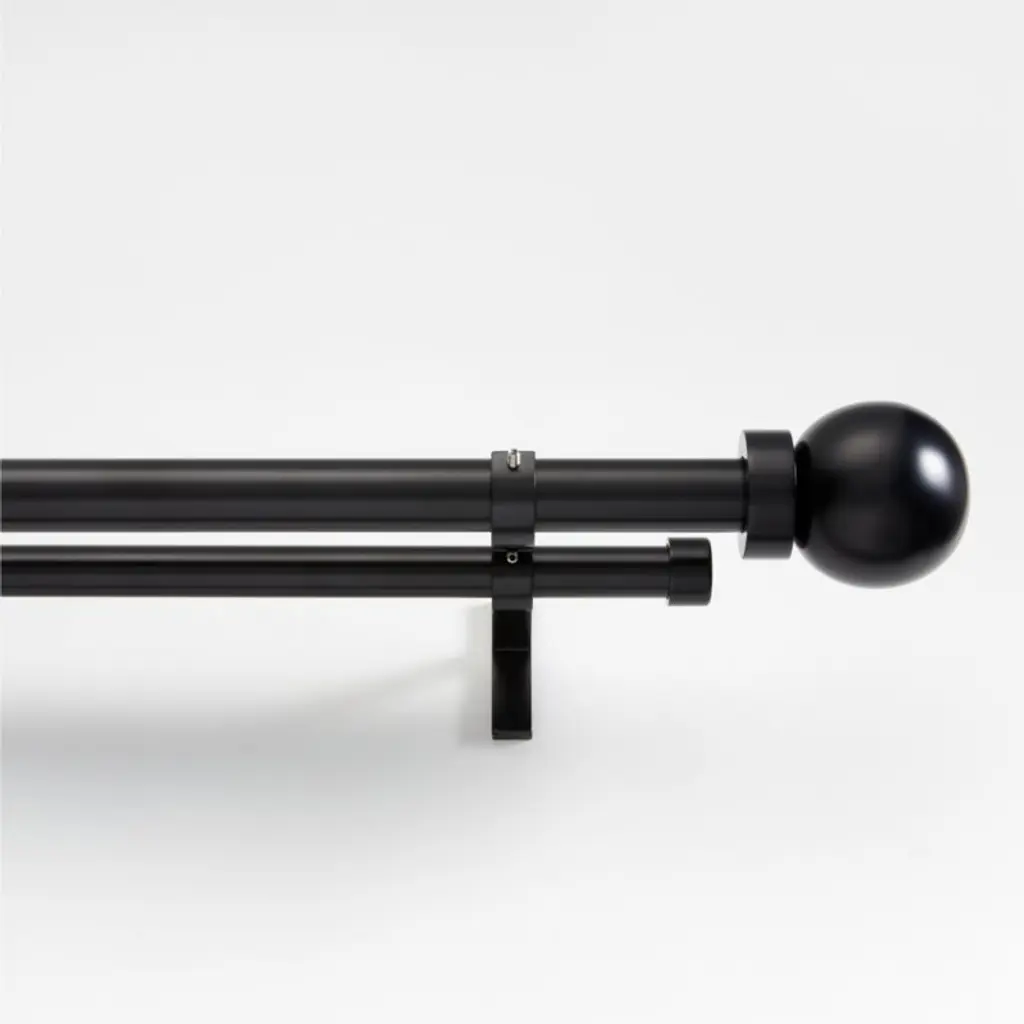 Our two-tier curtain rod set hangs both panels and sheers for a layered look, adjusting easily to your preferred levels of light and privacy. Small black spheres punctuate your drapery with clean geometry, adding crisp definition to the slim curtain rods and understated brackets. This double curtain rod set includes telescoping rods, brackets and mounting hardware, all in black. Complete your window dressing with our black curtain rings and tiebacks (sold separately).