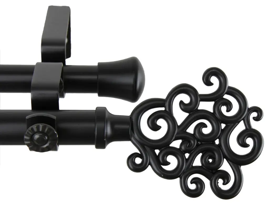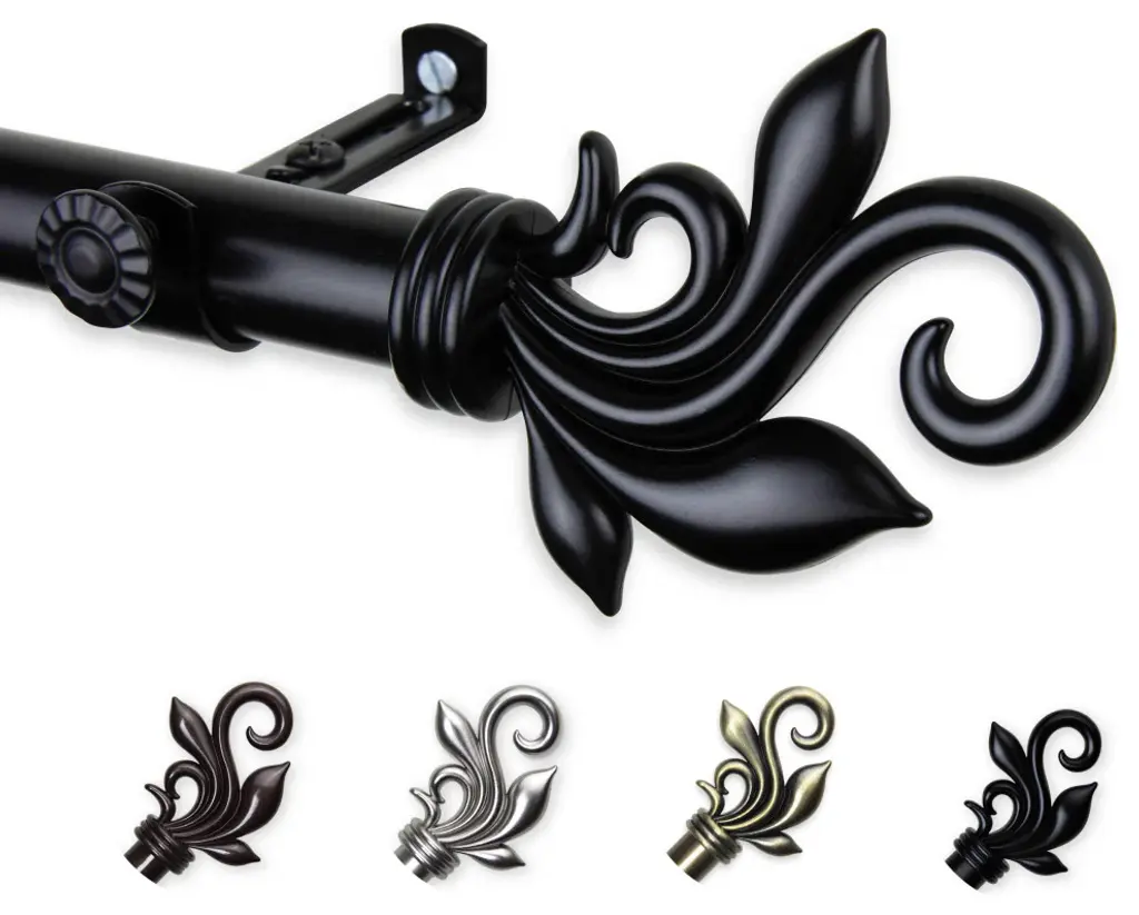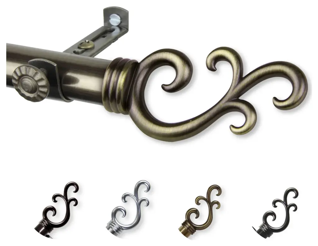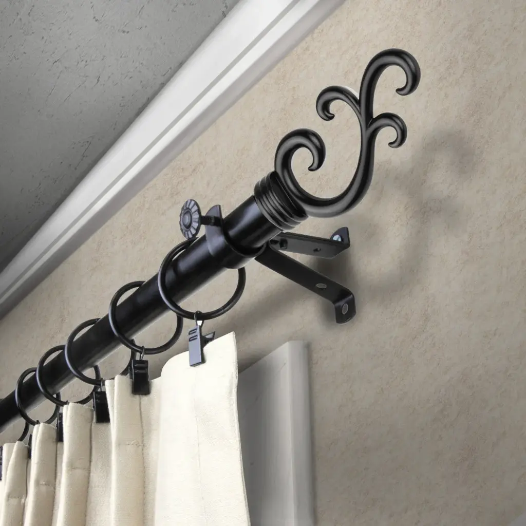 Introduce an elegant touch to your window treatment with this beautiful 13/16" diameter curtain rod set, made of high quality steel rods. Includes telescoping steel pole, mounting hardware, brackets, and 2 finials Projection: 2.875" Finial measurement: 4" W x 2" H x 1.25" D