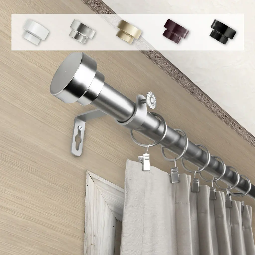 We are pleased to introduce our designer-inspired Topper Finial Drapery Rod made with high quality steel pole. This curtain rod will add an elegant statement to any room. Matching Double Rod is also available and sold separately.Includes: 1" rod, ceiling mounting brackets, and finialsProjection: 3.625"Finials measure: 1.125" x 1.5" x 1.5"