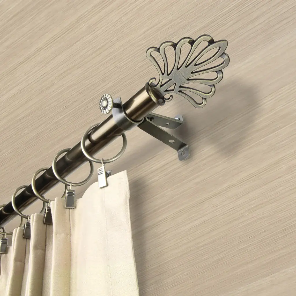 Introduce an elegant touch to your window treatment with this beautiful 13/16" diameter curtain rod set, made of high quality steel rods. Includes telescoping steel pole, mounting hardware, brackets, and 2 finials Projection: 2.875" Finial measurement: 3.375" W x 3.125" H x .188" D