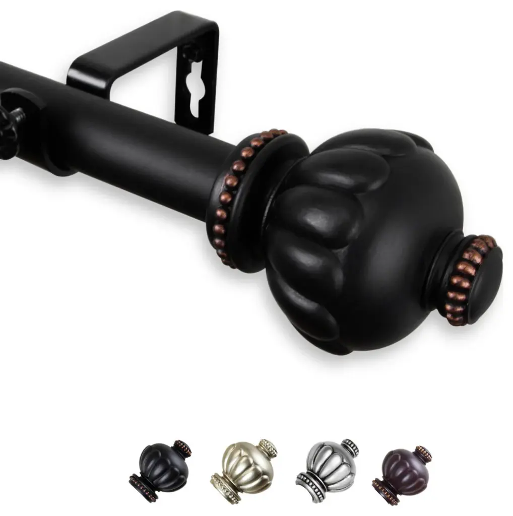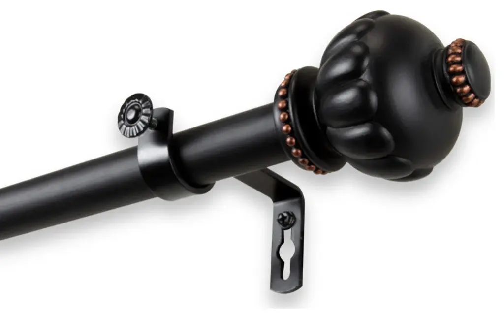 Central Design Products is thrilled to present our top-of-the-line Single Curtain Rods, the ultimate addition to any window treatment. Our high-quality rods are crafted with precision to provide a sleek and modern look to your home decor. Each set includes a single curtain rod, finials, sturdy mounting brackets, and all necessary mounting hardware. The elegant color of our curtain rods adds a touch of sophistication to your space. Upgrade your window treatment with Central Design Products'' Single Curtain Rods today! Includes 1 curtain rod of 1" diameter, finials, mounting brackets, and mounting hardware. Size: 120-170" Projection: 3.625" Rod Diameter: 1" Material: Steel