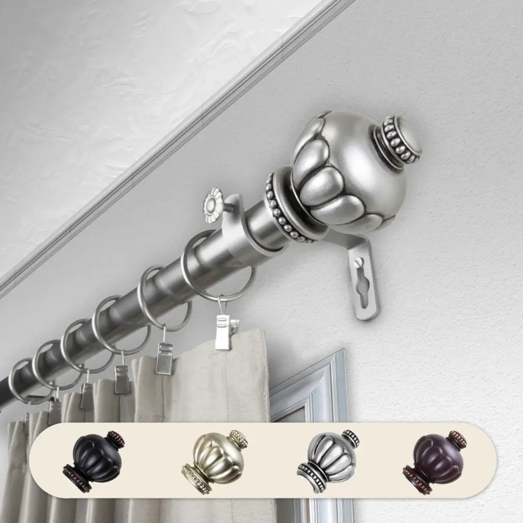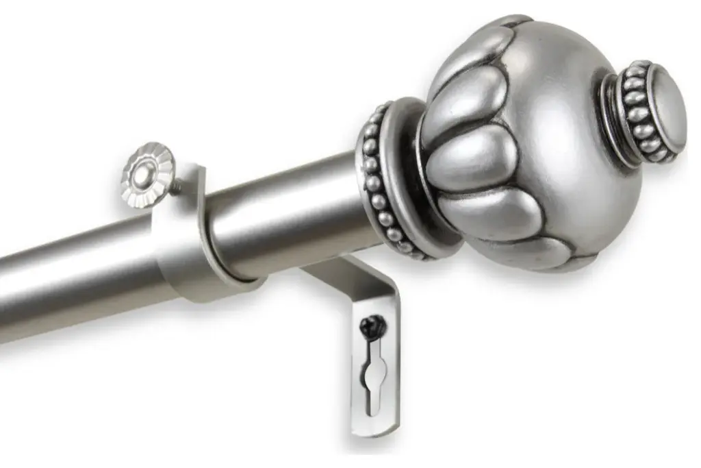 Central Design Products is thrilled to present our top-of-the-line Single Curtain Rods, the ultimate addition to any window treatment. Our high-quality rods are crafted with precision to provide a sleek and modern look to your home decor. Each set includes a single curtain rod, finials, sturdy mounting brackets, and all necessary mounting hardware. The elegant color of our curtain rods adds a touch of sophistication to your space. Upgrade your window treatment with Central Design Products'' Single Curtain Rods today! Includes 1 curtain rod of 1" diameter, finials, mounting brackets, and mounting hardware. Size: 66-120" Projection: 3.625" Rod Diameter: 1" Material: Steel