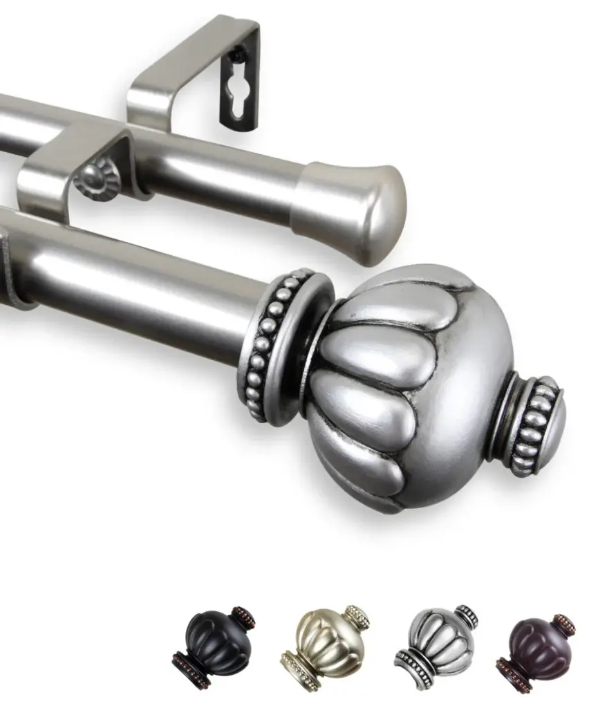 Bran 1" Curtain Rod, Satin Nickel, 66-120"