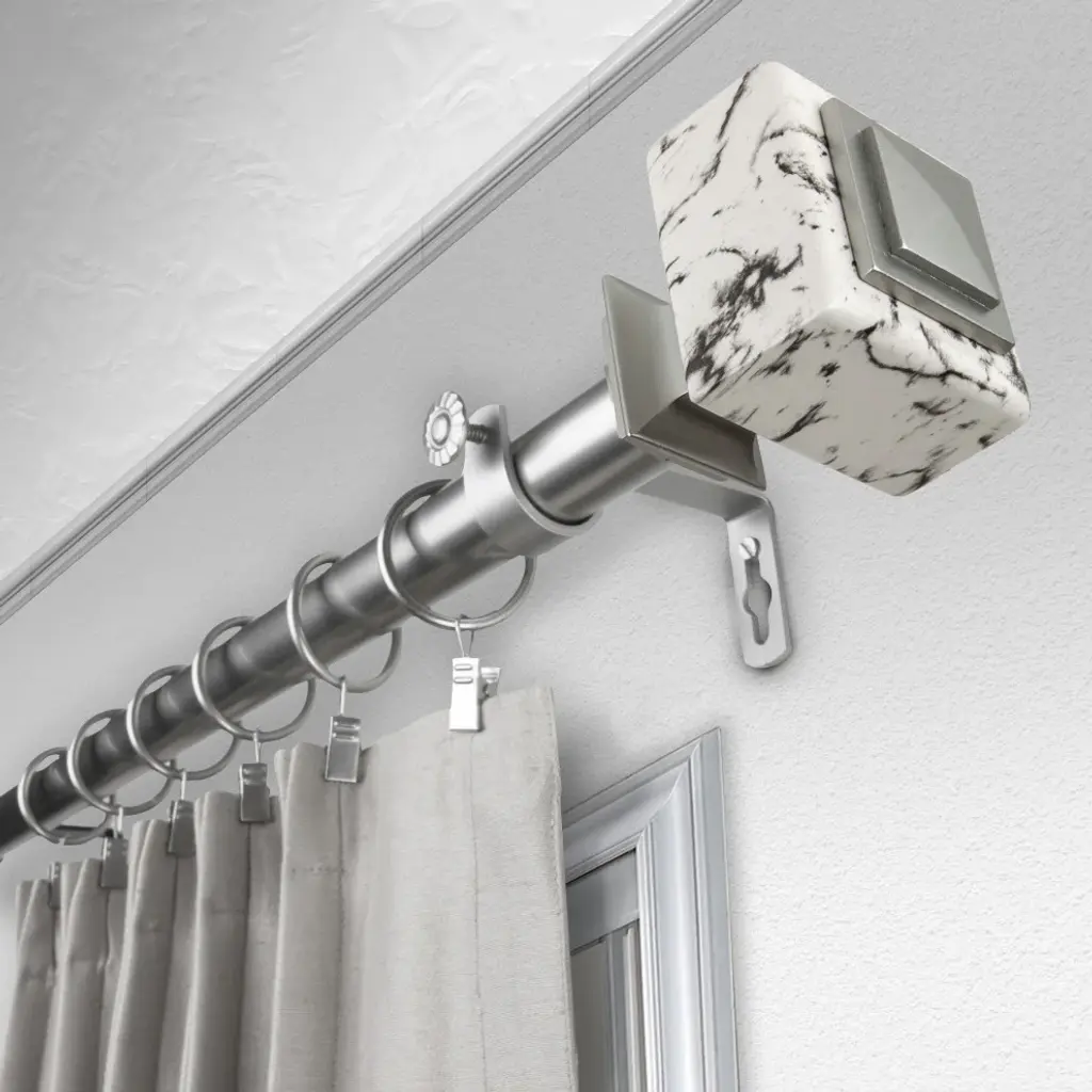 Decorate your window with Central Design Products Curtain Rod. This rod is made of solid steel pole with high quality finials that will add sophisticated touch to your windowIncludes one 28-48 inches telescoping steel pole, 2 brackets, and 2 finialsFinial Measurement: 3-1/2" W x 2-1/2" H x 2-1/2" DProjection: 3.625 inchesRod Diameter: 1 inch