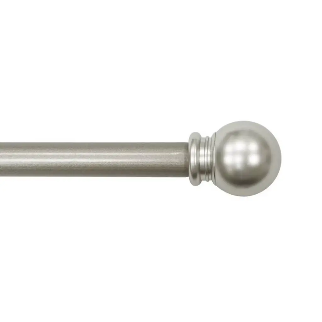 Show your curtains off to their best effect with this modern-classic set. Simple yet statement-making, subtly shining spheres punctuate your drapery with clean geometry, adding crisp definition to the sleek curtain rod and understated brackets. This curtain rod set includes a telescoping rod, brackets and mounting hardware, all finished in brushed nickel. Complete your window dressing with our brushed nickel curtain rings and tiebacks (sold separately).