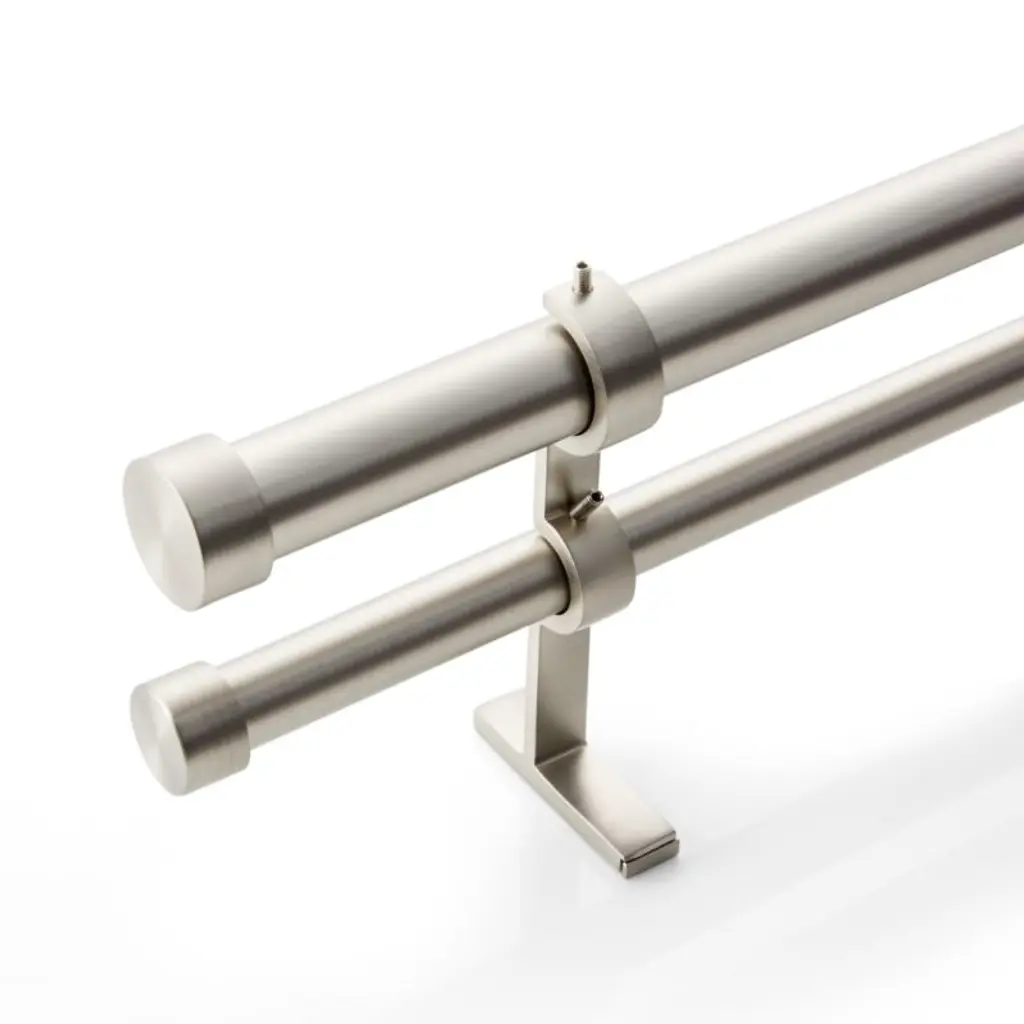Brushed Nickel 1" Double Curtain Rod And End Cap Finials Set 48"-88"