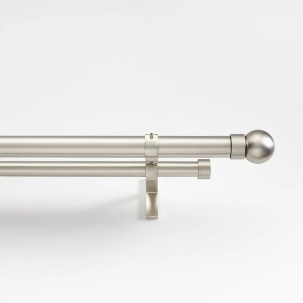 Brushed Nickel 1" Double Curtain Rod And End Cap Finials Set 88"-120"