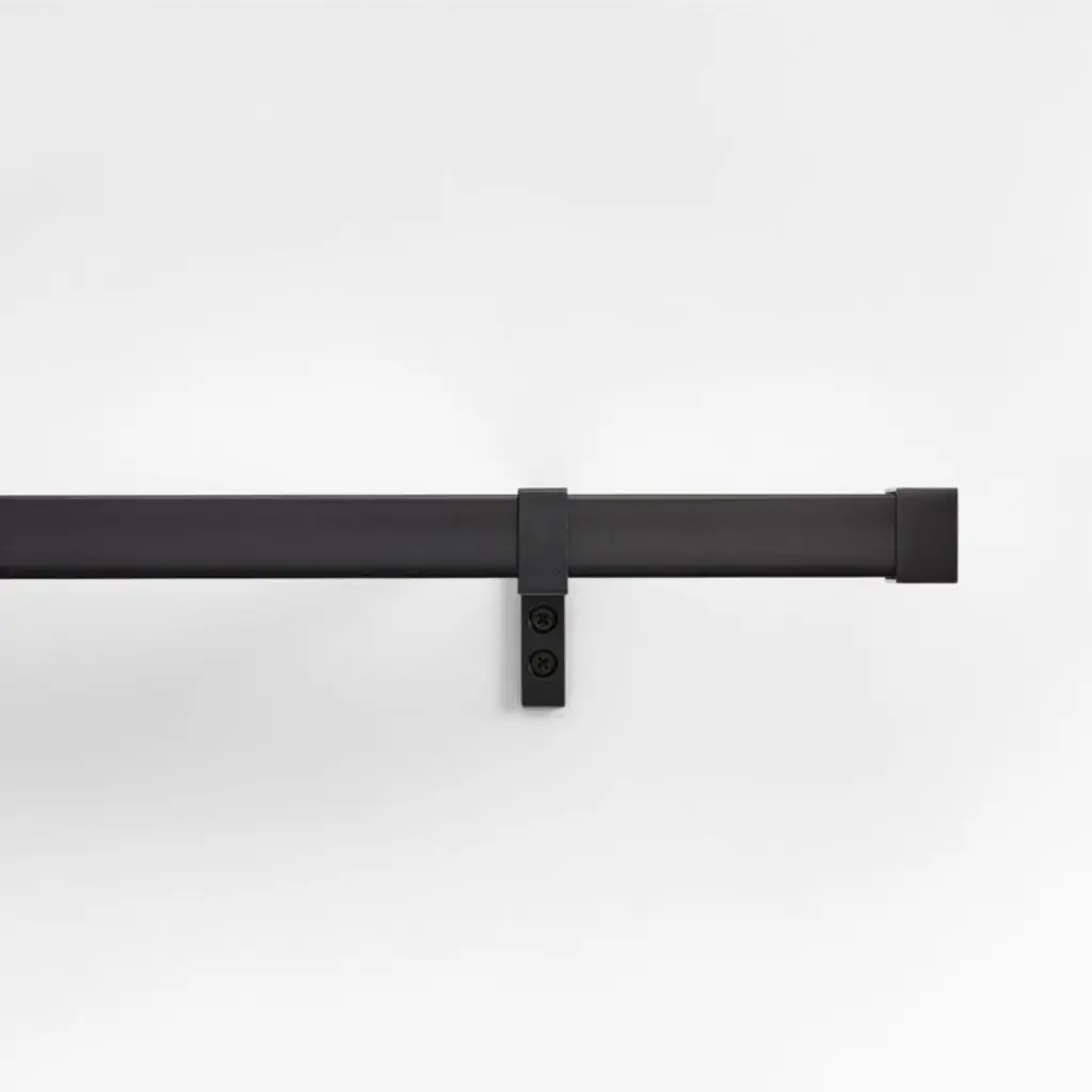 Show your curtains off to their best advantage with this modern rod set. Held in understated brackets, the square telescoping rod is finished at each end with square end cap finials that continue the geometric look. The curtain rod set includes a telescoping rod, brackets and mounting hardware, all in handsome brushed nickel. Complete your window dressing with our brushed nickel curtain rings and tiebacks (sold separately).