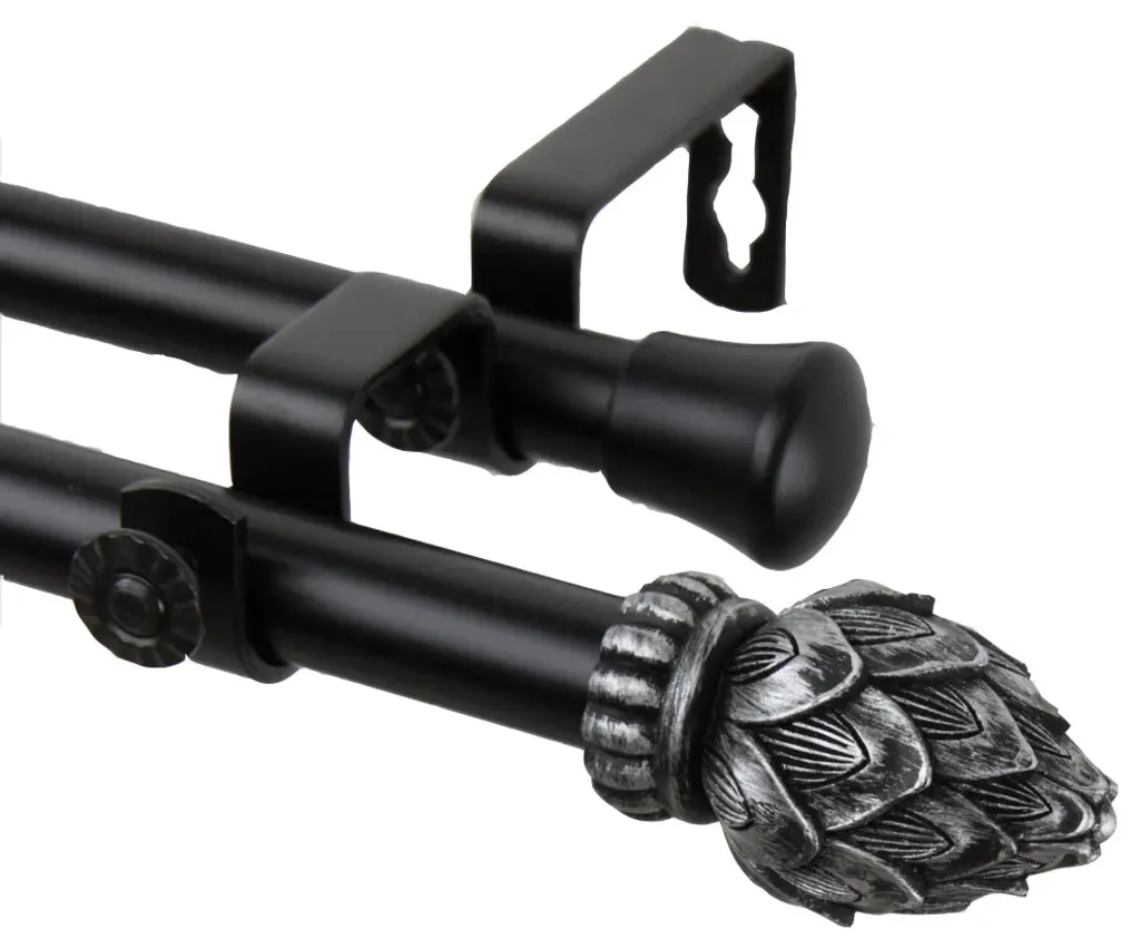 Bud 13/16 Inch Double Corner Window Curtain Rod, Black, 66-120"