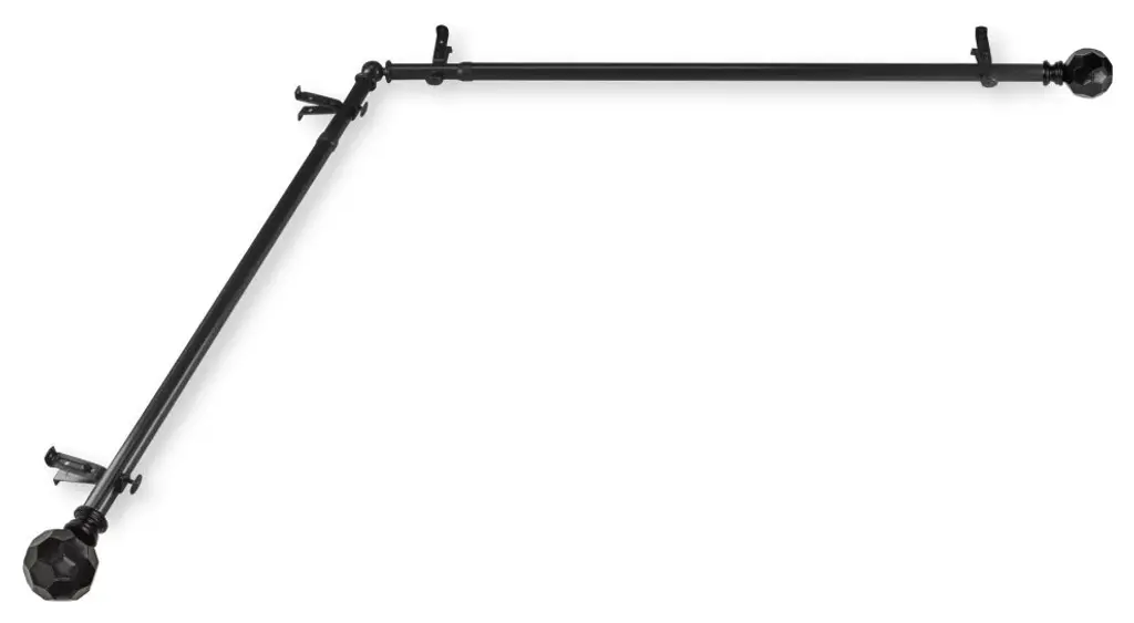 Easily and effortlessly decorate your corner windows with curtains. 1 set of two 13/16 inch diameter curtain rods attach via corner ball connector that allows for nearly 360 of rotation. These high quality steel rods are accented with decorative finial end pieces.Includes: two 13/16 inch diameter rods, 2 finials, 1 corner connectors, and mounting hardware.Finial Measurement: 2-1/2 inch W X 1-1/2 inch H x 1-1/2 inch DBracket Projection: 2.875 inchInstallation instructions includedSteel Rod and Resin Finial