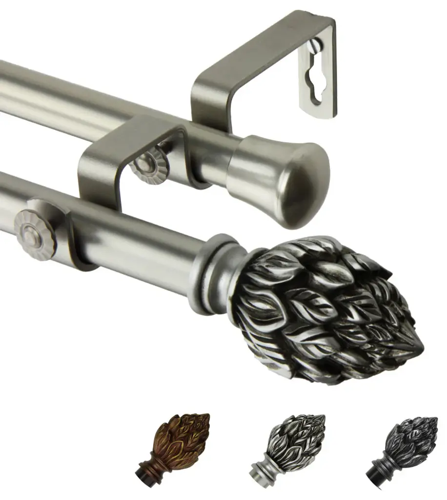 Bud 4-Sided Double Bay Curtain Rod - Satin Nickel