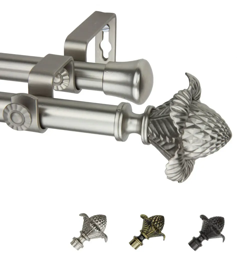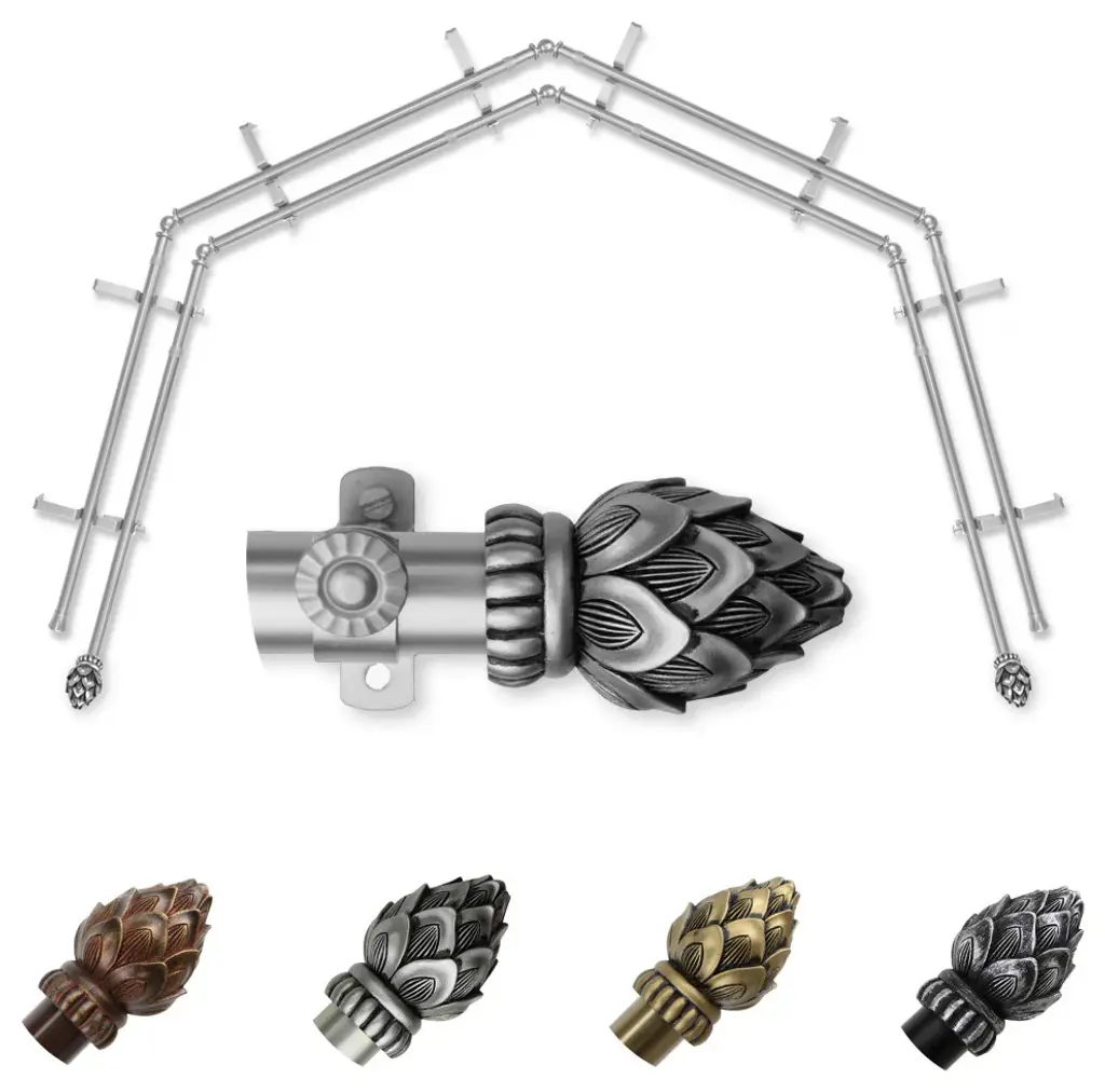 Bud 5-Sided Double Bay Curtain Rod - Satin Nickel